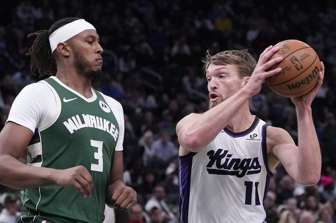 国王客场对阵雄鹿,国王缺少了穆雷、蒙克,首节比赛雄鹿优势明显,很快领先15分,首节战罢领先11分,第二节国王强势反弹,单节追回10分,第三节国王再接再厉反超6分,第四节雄鹿一度把分差追到1分,但功亏一篑,最终国王以2分优势险胜雄鹿。国王4人得分20+,小萨13中8得到24分13板6助,拉文17中8(三分13中6)得到31分4板2助,德罗赞19中10得到29分4板3助,施罗德13中8得到24分5板7助,威少12分5板10助攻,雄鹿方面字母哥13中8得到26分11板8助,库兹马13中9得到22分1板1助。